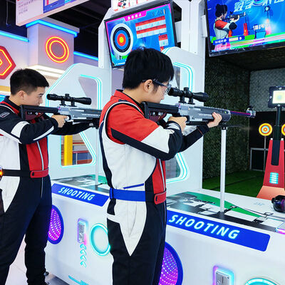 Olympic shooting is an indispensable competitive event in the International Olympic Games.This event precisely replicates the principles of Olympic shooting, achieving unparalleled accurracy and competitiveness. It is an indispensable part for venues, training bases, and shooting clubs. A single precise shot will give you a full sense of experience and achievement.You can adjust the position of the stabilizing bracket according to your height by pressing the up and down keys on the right. Place the gun in the appropriate position and aim for scoring. It will display on the screen. One round consists of 10 shots.